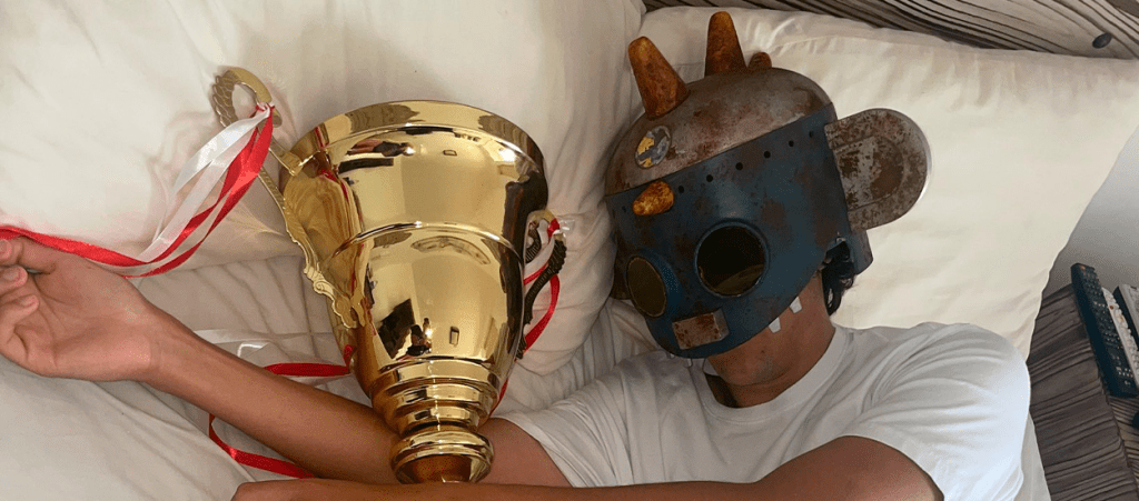 El bicampeón peruano ha amanecido bien acompañado con la copa de la presente temporada. Junto a su famoso casco de Toy Lokazo, con el cual ha disputado parte de las jornadas finales, Jaze ha deseado en la red social Twitter un «buen día» a todos. Y no es para menos.